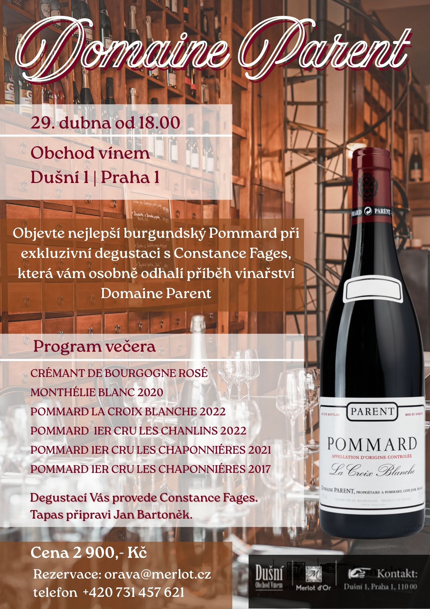 Ve středu 29. dubna se naše vinotéka v Dušní ulici promění v kousek Burgundska. Rodinné vinařství Domaine Parent, jehož historie sahá až do roku 1803, je synonymem pro špičkový Pinot Noir a nekompromisní kvalitu v režimu biodynamiky.